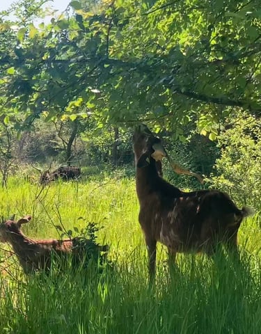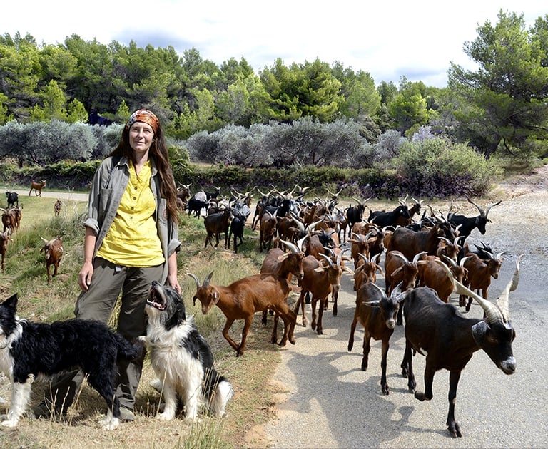 Les chèvres sortent plusieurs heures par jour (entre 5-6h) brouter dans les collines embroussaillées et les friches des Alpilles. A dominante de pins d'Alep et de chênes verts, le sous-étage arbustif (chêne kermès, cade, laurier thym) constituent les parcours de ces dames (voir le Menu Des Garrigues). Pratique ancestrale, ce type de silvo-pastoralisme valorise des espaces arborés denses, qui nécessitent une connaissance intime de l'environnement, un pastre et du temps.